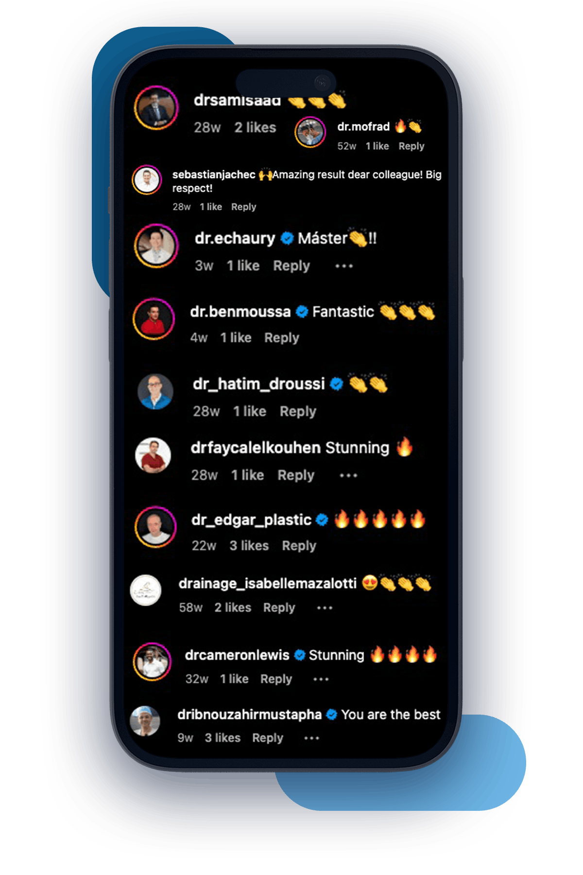 In the image above, you can see numerous comments from other doctors praising Dr. Aslani's expertise and contributions to the field.